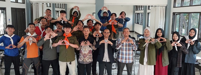 Pimpinan dan peserta berfoto sebelum keberangkatan berpetualang. (Foto: Panitia)
